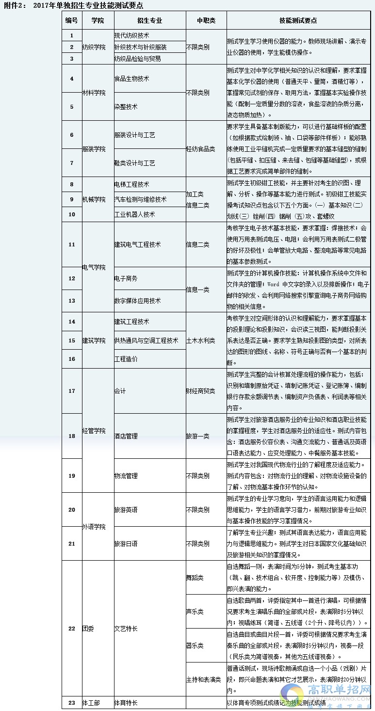 中职考生和艺体特长考生技能测试要点(见附件2)。