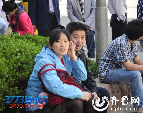 家长坐在考点外的花坛边等待考试结束。(齐鲁网记者 朱夏雅南 摄)