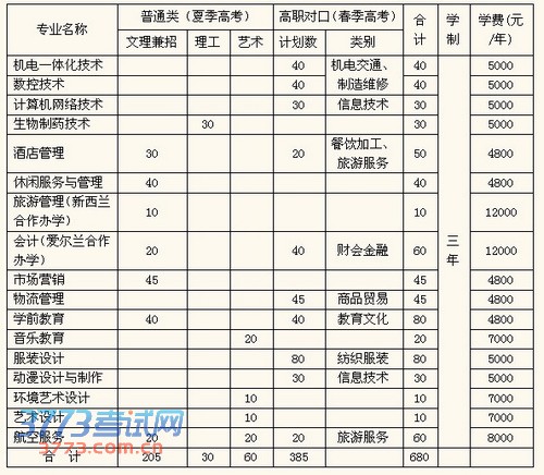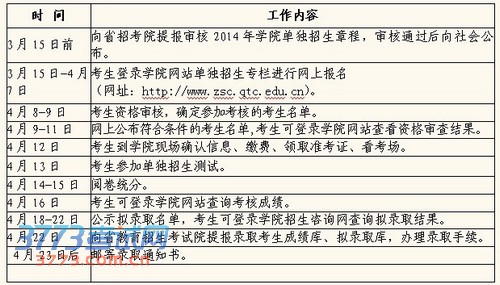 青岛职业技术学院2014年共有17个专业安排单独招生计划,较去年减少1个,计划数为680人,与去年持平。具体工作时间安排如下: