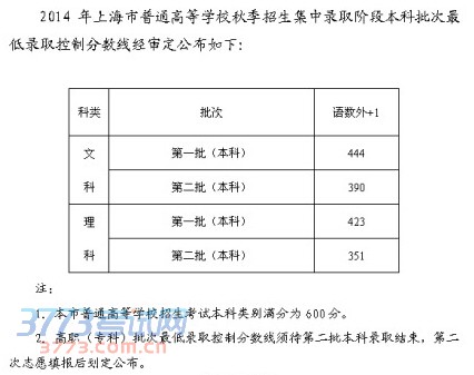 [组图]2014上海高考一本分数线:文科444分理科423分