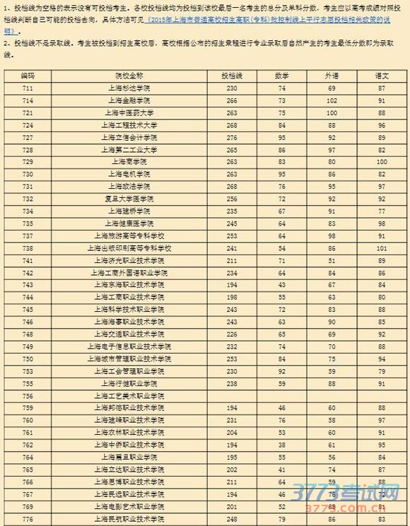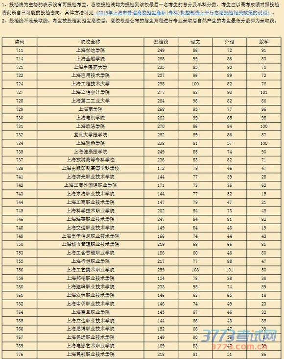 东方网8月10日消息:上海市教育考试院今天公布“2015年上海市普通高校招生高职(专科)批控制线上平行志愿投档各校投档分数线”。