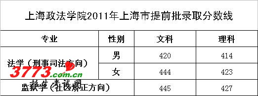 [图文]上海政法学院2011年上海提前批录取分数线