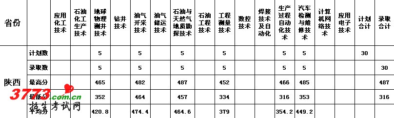 [图文]天津石油职业技术学院2009年陕西录取分数线