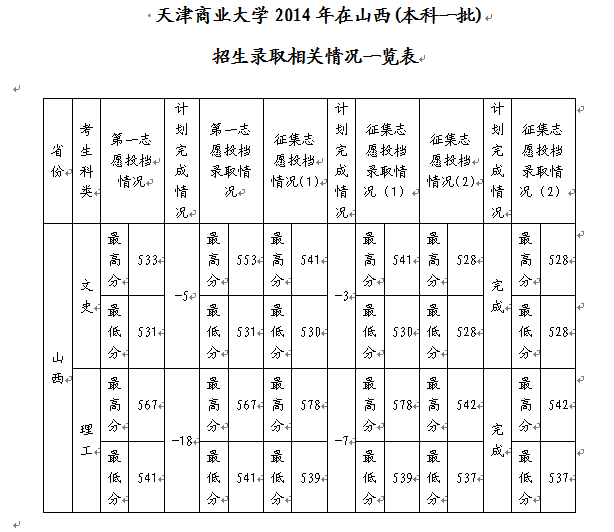 [图文]2014天津商业大学山西一本录取分数线情况