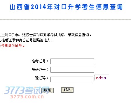 1、本系统用于2014年山西省中等职业学校毕业生对口升学、退役士兵对口升学考试成绩、录取信息查询;