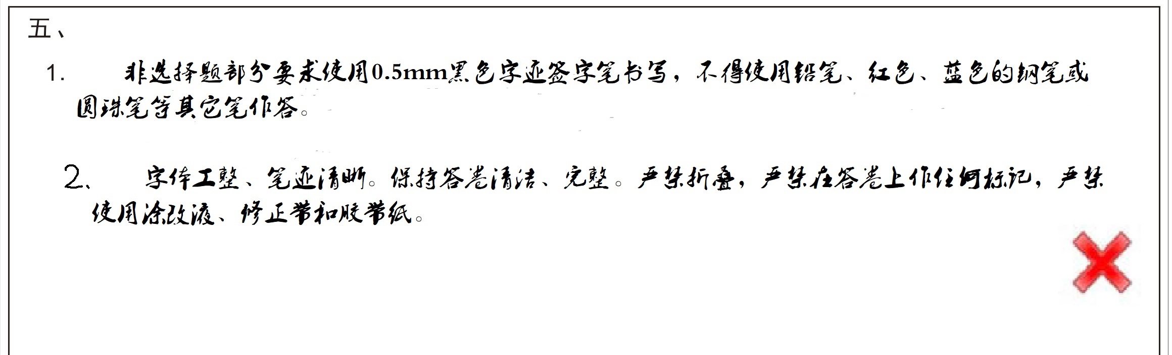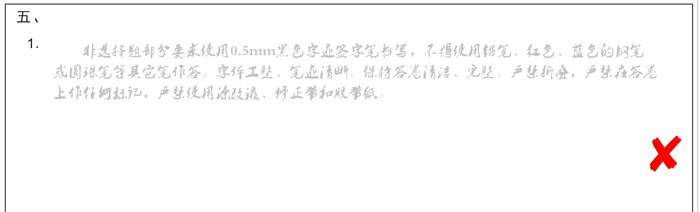 ①请不要用铅笔或圆珠笔作答,否则扫描图片不清楚,影响阅卷: