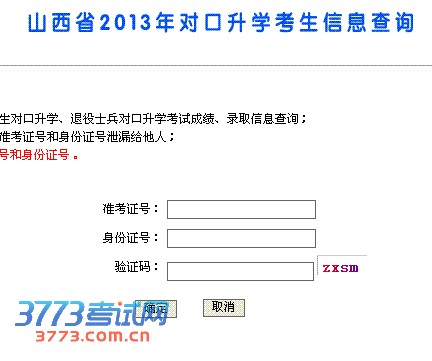 1、本系统用于2013年山西省中等职业学校毕业生对口升学、退役士兵对口升学考试成绩、录取信息查询;