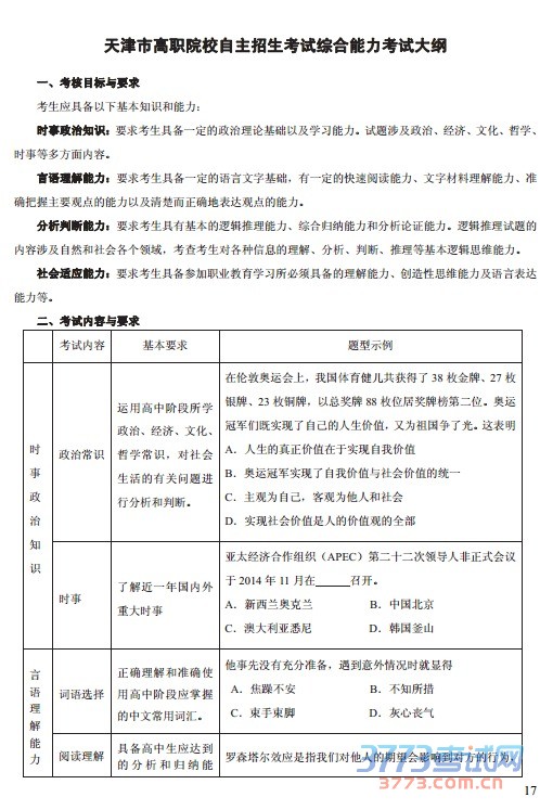 社会适应能力:要求考生具备参加职业教育学习所必须具备的理解能力、创造性思维能力及语言表达