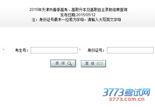 2015年天津市春季高考、高职升本及高职自主录取结果查询