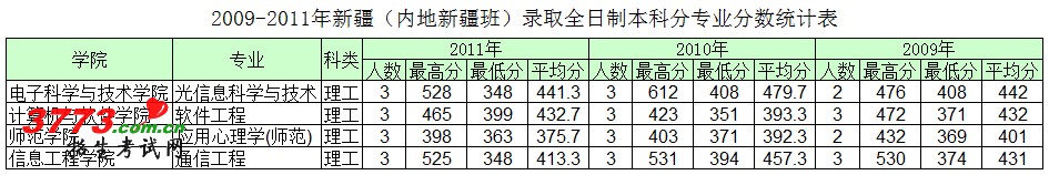[图文]深圳大学2009-2011年内地新疆班分专业录取分数线