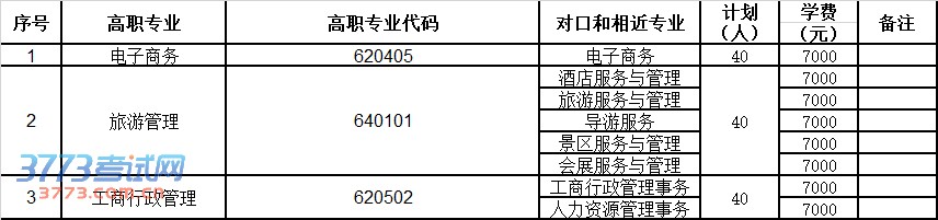 2014年对口招生拟选3个专业,共招收200人。招生专业及招生计划如下: