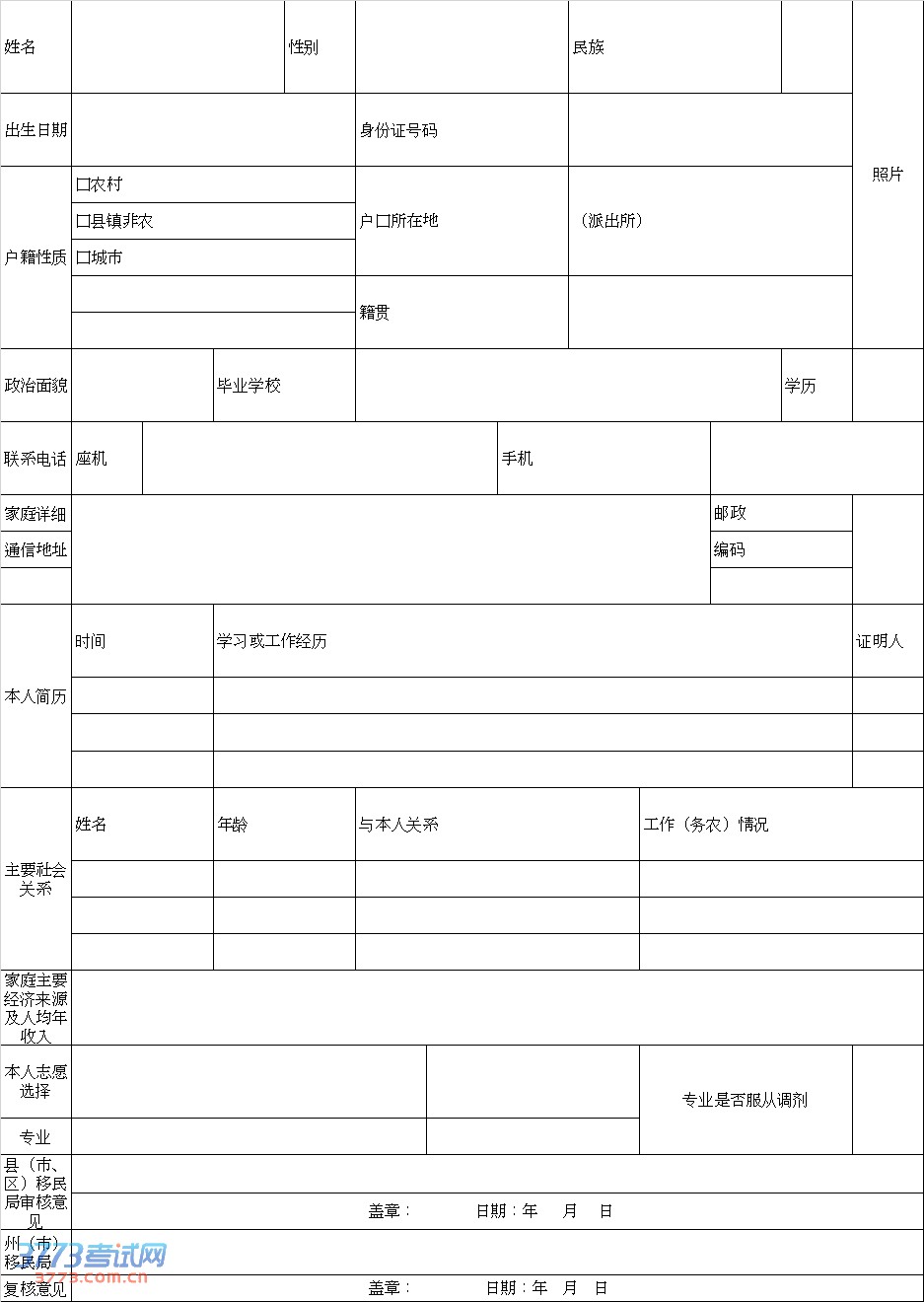 填表说明:本表一式三份,省移民局、财政厅、招生学校各一份