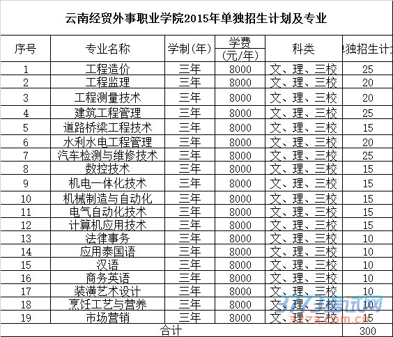 4、考试费:按云南省物价局、省财政厅、省教育厅《关于我省高等院校单独招生考试及自主选拔录取考试收费标准的通知》(云价收费〔2012〕35号)的规定,收取单独招生考试费为每生130元,考生在报名确认时交当地招考办。
