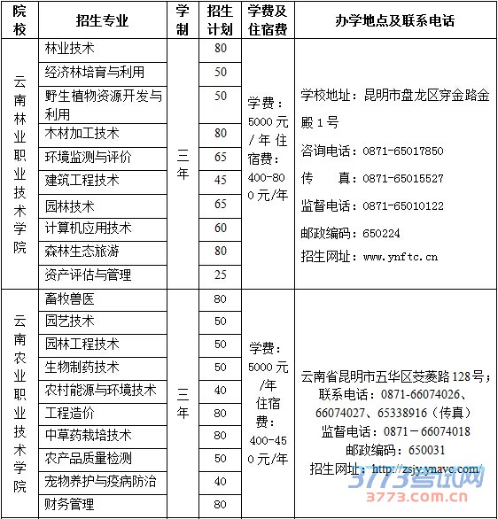 云南林业职业技术学院 云南农业职业技术学院