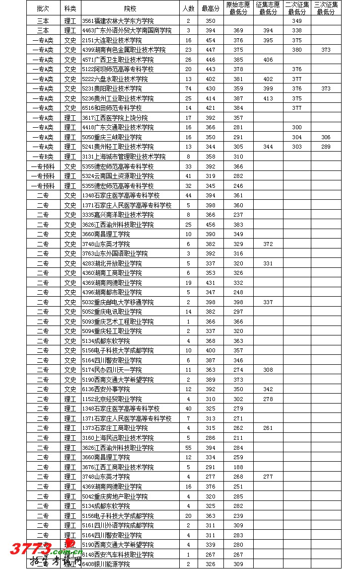 [图文]2012年8月19日云南高考院校录取分数线日报