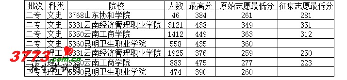 [图文]2012年8月20日云南高考院校录取分数线情况