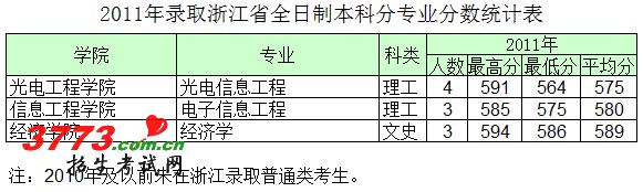 [图文]深圳大学2009-2011年浙江分专业录取分数线