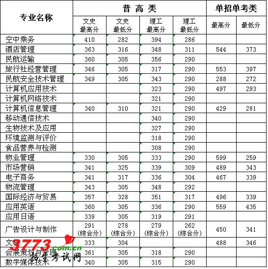 浙江育英职业技术学院2010年各专业录取新生最高分和最低分