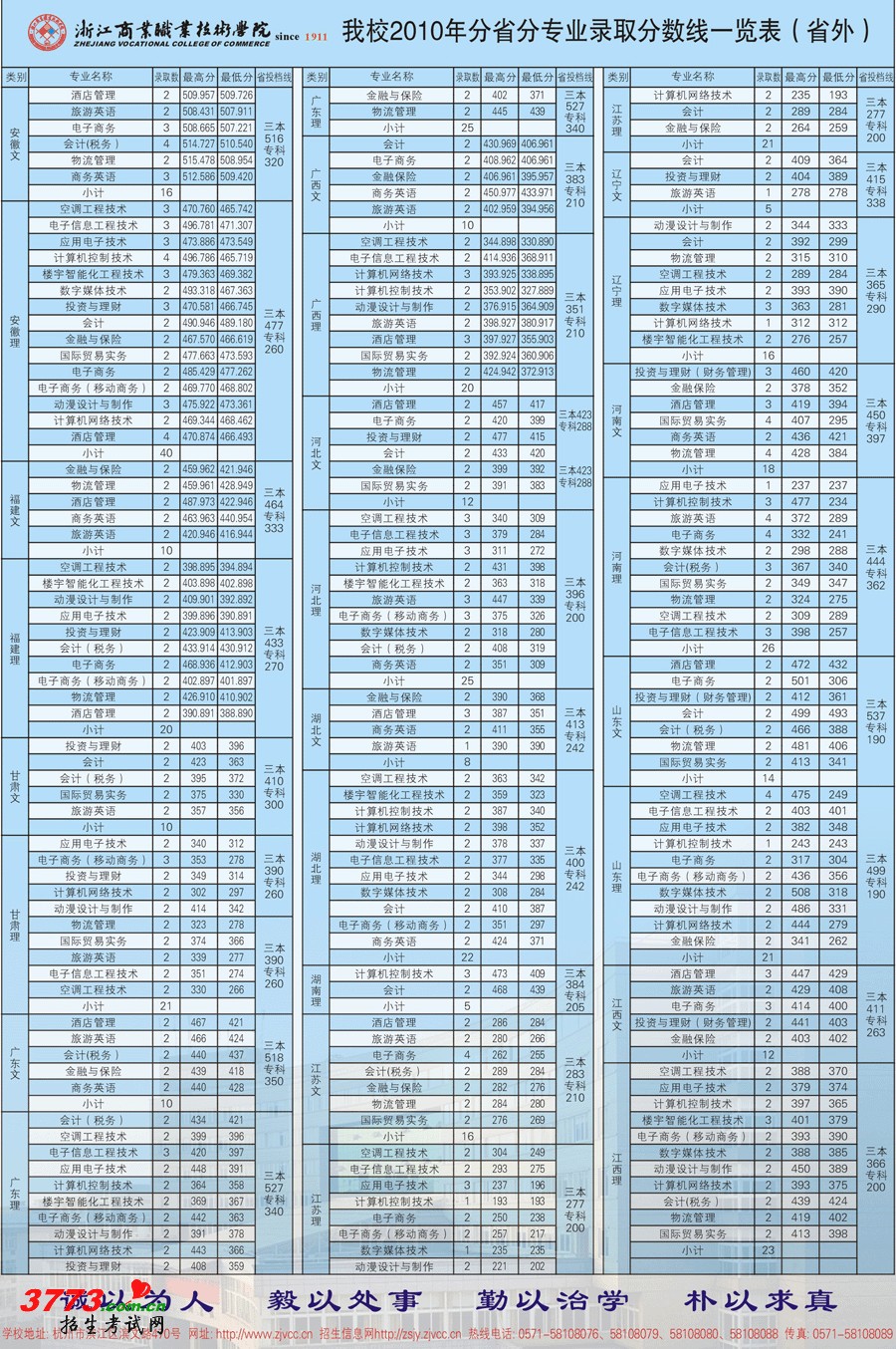 [图文]浙江商业职业技术学院2010年省外各专业录取分数线