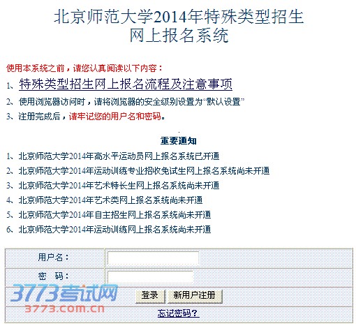 北京师范大学2014年特殊类型招生网上报名系统