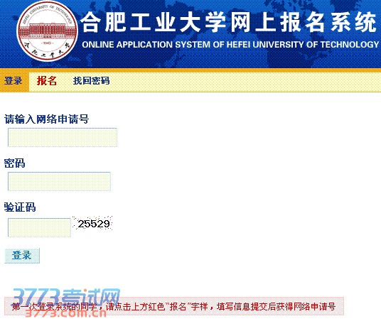 第一次登录系统的同学,请点击上方红色“报名”字样,填写信息提交后获得网络申请号正在载入页面,请稍候...