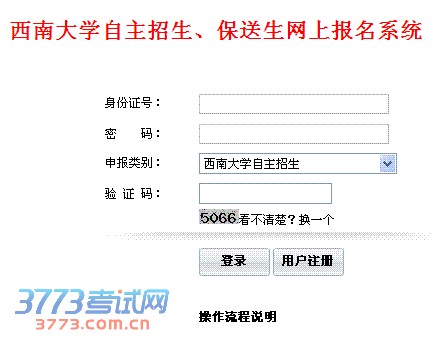我校自主选拔报名采取中学推荐与自荐相结合的原则。我校网上报名从即日开始,所有考生必须登陆“西南大学本科招生网”(http://bkzsw.swu.edu.cn),注册并登陆“网上报名系统”,填写并直接打印《西南大学2014年本科生自主选拔录取申请表》(申请表粘贴1吋彩色免冠照片,由所在中学加盖照片骑缝章)。由学生所在中学如实登记学生成绩并签署推荐意见后,附高中成绩册复印件、有效获奖证书复印件、公开发表作品复印件及其它相关证明材料整理成册,以中国邮政特快专递(EMS)方式一并邮寄或送达我校招生办公室。(邮寄地址:重庆市北碚区天生路2号,西南大学招生办公室,邮编:400715)。