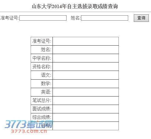 山东大学2014年自主招生录取拟定资格查询 自主选拔录取(校长推荐、学科竞赛特长生):点击查询