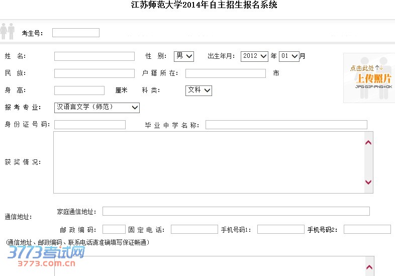 江苏师范大学2014年自主招生报名系统