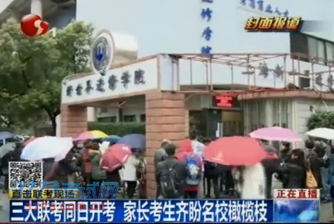 今天在上海同济大学新世界进修学校举行的是北约联考。考场外,我们见到了不少南通考生。虽然距离高考还有98天,但面对通过层层选拔可以获得的名校联考机会,孩子们都卯足了劲。