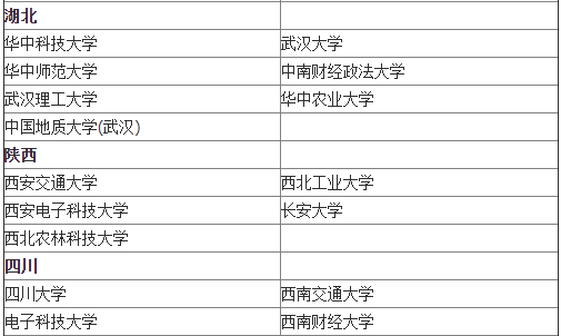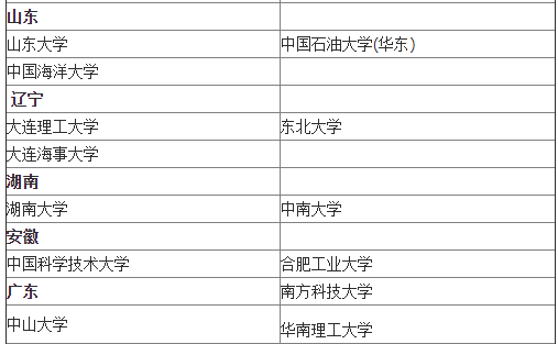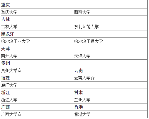贵州大学、南京师范大学、四川农业大学、上海大学福州大学西北大学、云南大学、郑州大学、广西大学、北京工业大学湖南师范大学、 黑龙江大学 西南政法大学