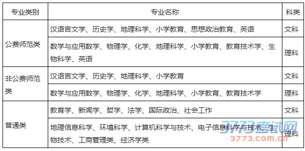 注:北京市、上海市、江苏省无公费师范专业招生计划。