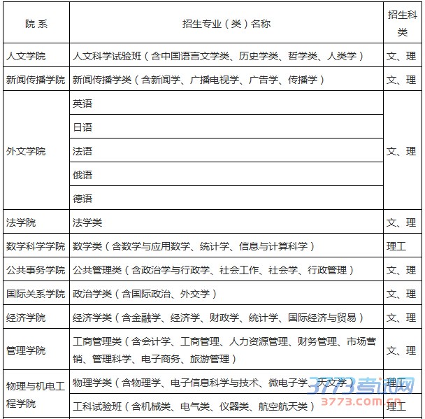 ①数学奥赛:数学科学学院、物理与机电工程学院、信息科学与技术学院、软件学院各招生专业类;