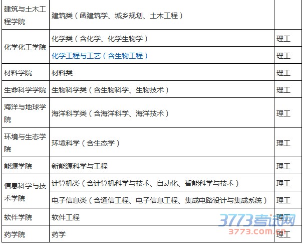 ③化学奥赛:化学化工学院、生命科学学院、材料学院、海洋与地球学院、环境与生态学院、能源学院各招生专业类;