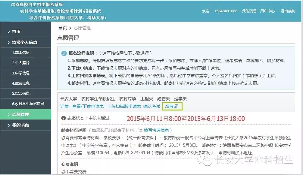 注意:本通知仅针对长安大学2015年农村学生单独招生的考生,不包括自主招生的考生。