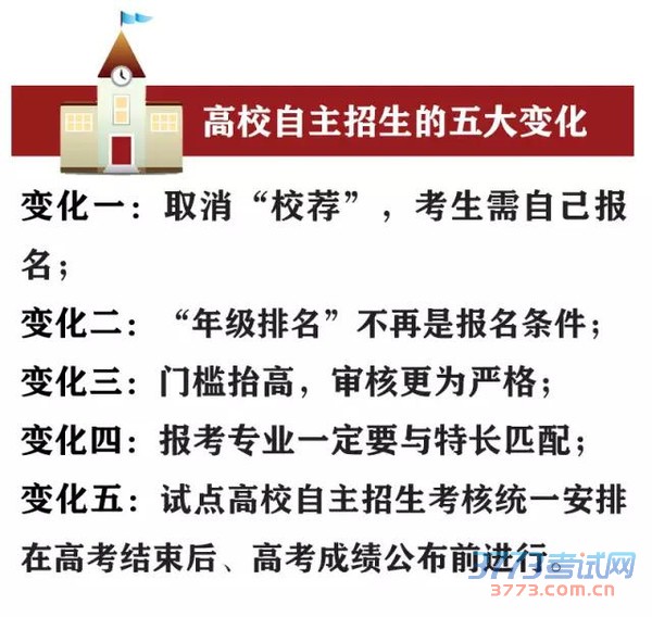 目前,2016年各高校自主招生简章已开始陆续公布。小编在这里提醒广大考生注意,从明年开始,高校自主招生有五大变化!