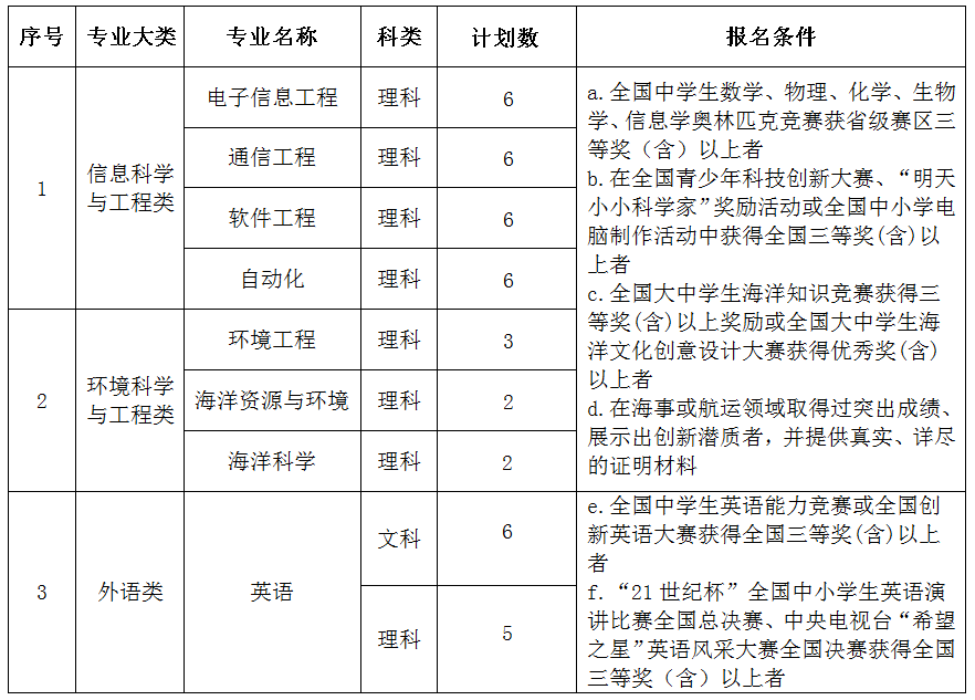 理想信念坚定、思想品德优良、诚实守信、遵纪守法,在高中阶段具备相应专业所需的报名条件之一者均可申报,报名条件详见下表: