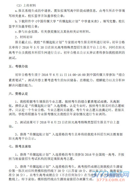 中国传媒大学2016年“传媒起航计划”招生简章