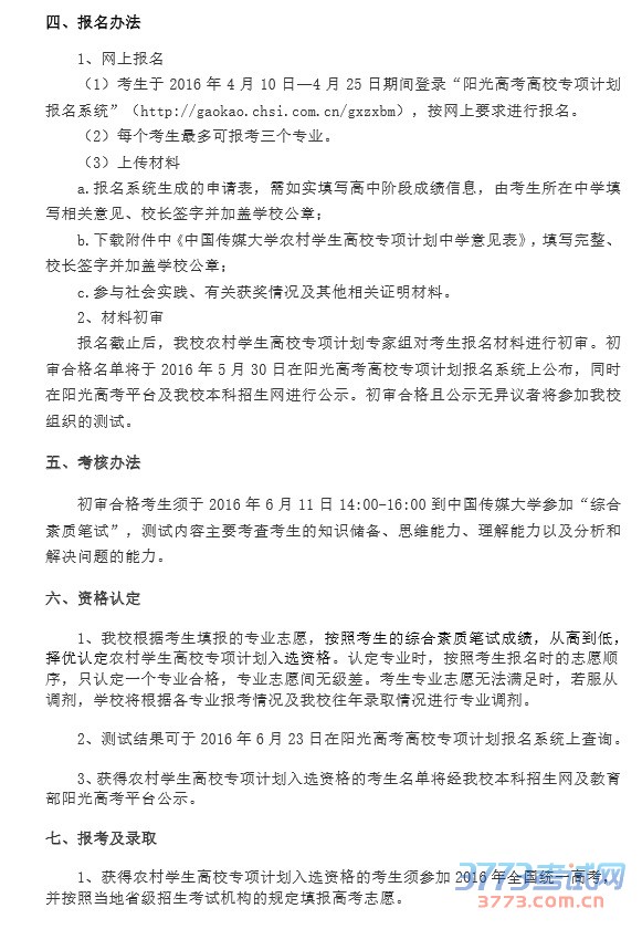 相关文章 2016中国传媒大学自主招生初审结果查询入口2016中国传媒大学农村学生高校专项计划中学意见2016中国传媒大学传媒起航计划单独招生简章2016中国传媒大学自主招生报名时间报名办法2016年中国传媒大学自主招生简章2016中国传媒大学小语种不再自主招生2014中国传媒大学在西藏招文理科各专业录取分数2014中国传媒大学在新疆招文理科各专业录取分数2014中国传媒大学在宁夏招文理科各专业录取分数2014中国传媒大学在广西招文理科各专业录取分数 触屏版 电脑版 3773考试网 琼ICP备12003406号-1
