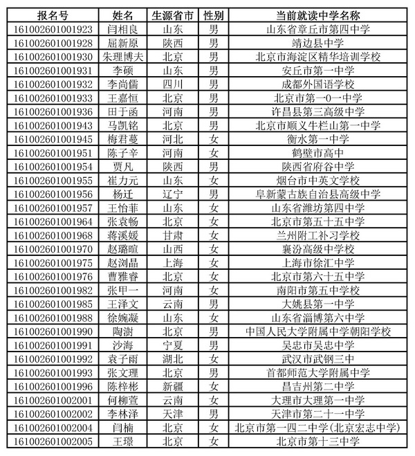[组图]2016北京中医药大学自主招生初审通过名单公示