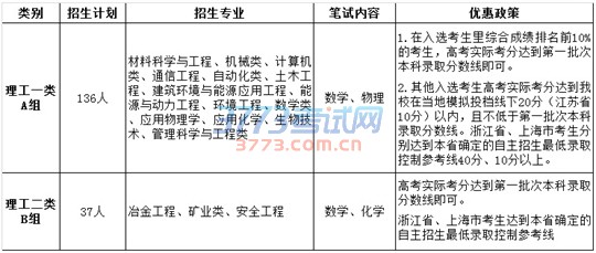 自主招生面向全国招生,专业为我校理工科的特色专业,分为理工一类和理工二类,分别含不同专业和优惠政策,具体详见下表。