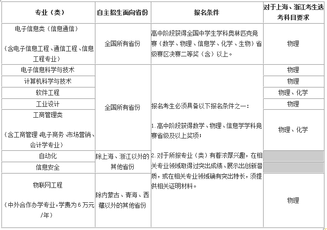 上海市、浙江省考生应按照上述各自主招生专业(类)选考科目要求,并根据自身情况选择报考。