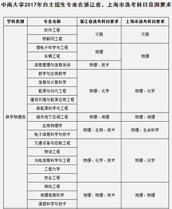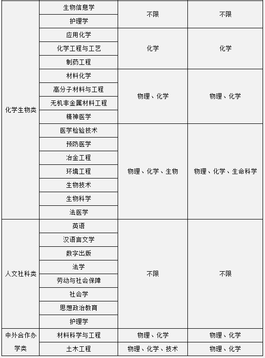 浙江省和上海市考生所填报专业必须满足我校相应专业选考科目范围要求,见附件3。