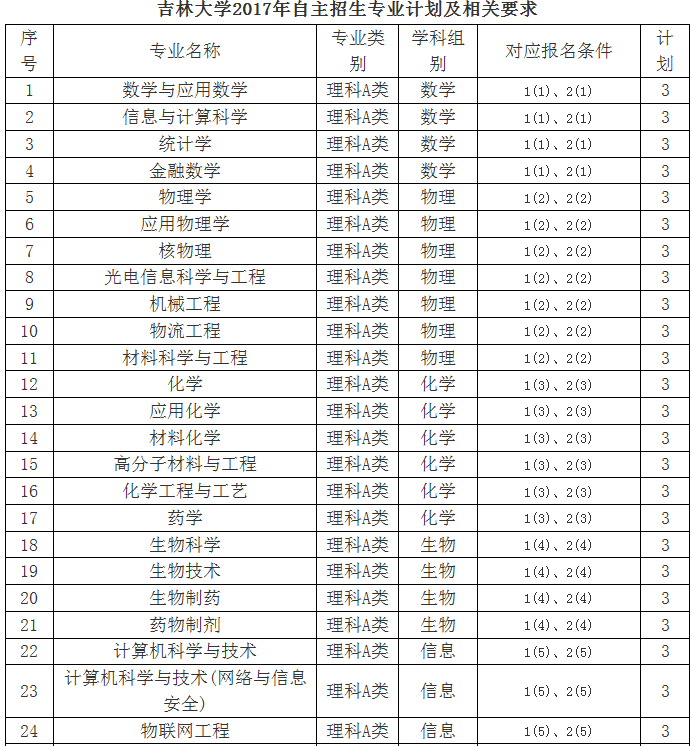 (1)《吉林大学2017年自主招生申请表》(中学审核成绩信息并加盖公章);
