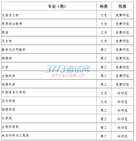 1.汉语言文学、思想政治教育、英语、历史学、数学与应用数学、物理学、化学、生物科学、地理科学按专业招生,执行国家师范生免费教育政策。外国语言文学类、历史学类、物理学类、化学类、生物科学类、食品科学与工程类按专业类招生。
