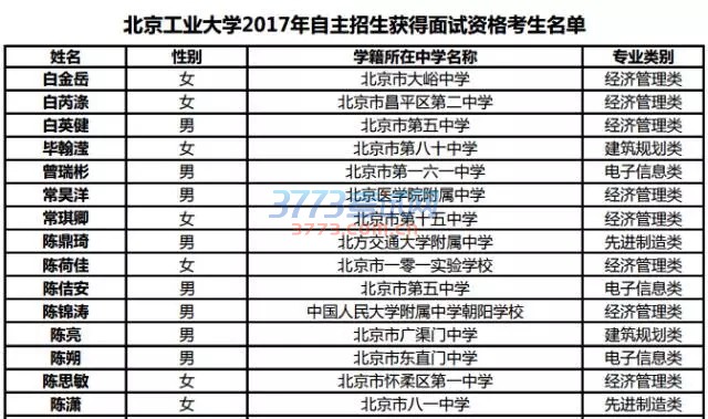 随着2017年高校自主招生报名结束,这几天各高校初审结果也将会陆续发布,自主招生信息平台将会第一时间给大家带来初审名单的好消息!北京工业大学今日就发布了初审名单,下面来就随小编一起看下北京工业大学的初审名单截图吧: