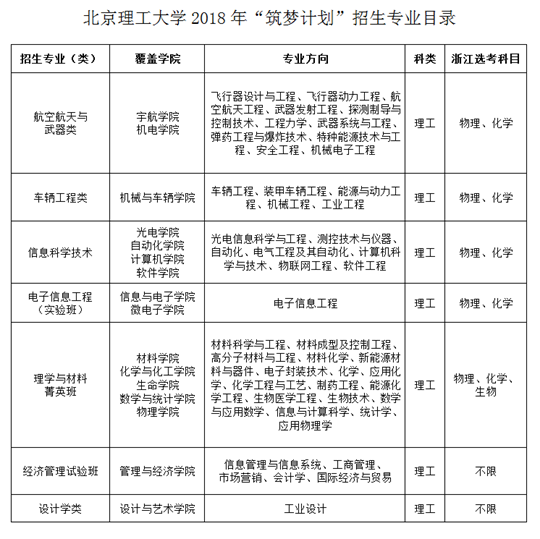 认定考生按生源地省级招办的统一安排和我校要求填报志愿,须服从专业调剂,方享有我校“筑梦计划”优惠政策;浙江省认定考生所填报专业须符合我校高考选考科目要求。我校将参考其所在省份普通一批专业录取情况安排专业(北京理工大学2018年“筑梦计划”招生专业见附件)。