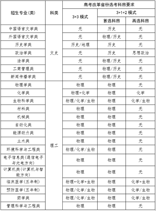注:高考改革省份选考科目要求中,“物理+化学”表示物理和化学均须选考,“物理/化学/生物”表示物理、化学、生物三门课程中只要选考其中一门即可,其他情况同理。