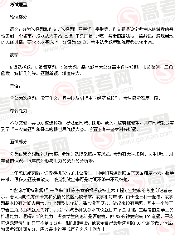 北京科技大学自主招生笔试试题笔按照往年惯例举行,与北京交通大学、北京邮电大学、北京林业大学、北京化工大学五校联考,统一命题、统一阅卷、同一时间进行考试;面试由该校各院分专业单独进行,顺序随机安排。