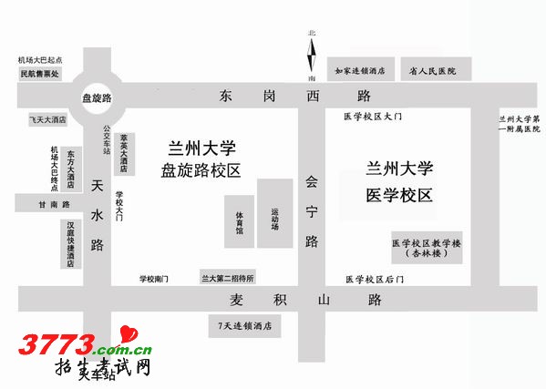 2.飞机场—兰州大学:乘机场大巴至东方大酒店(校门正对面)过马路即到,约一小时车程。