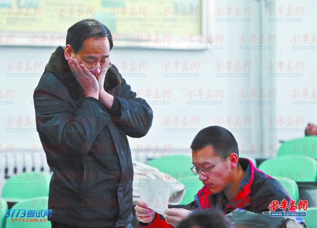 休息室中,考生在为考试做最后的准备,家长则在一边陪伴。